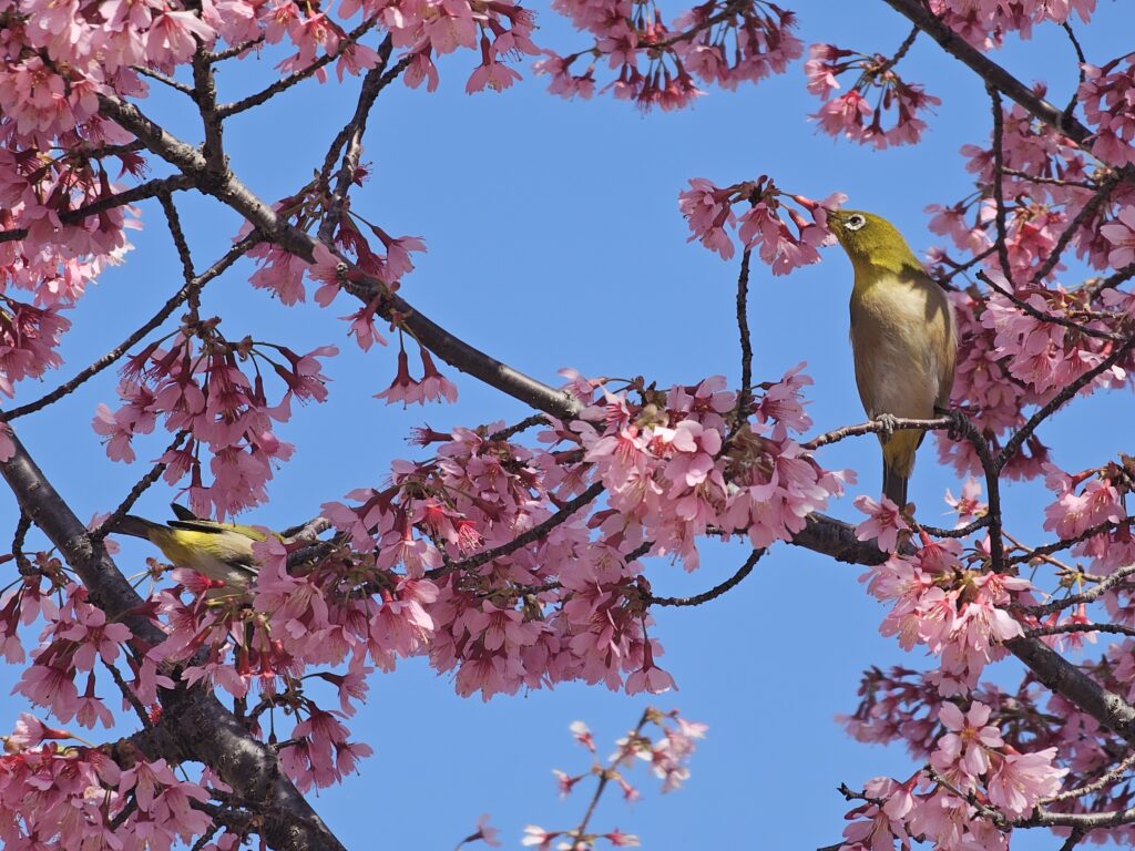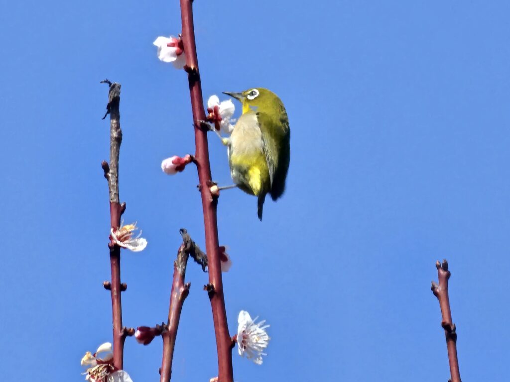 仕事の休日、ある公園に出かけ、メジロと梅、メジロと桜の2ショットを撮影。