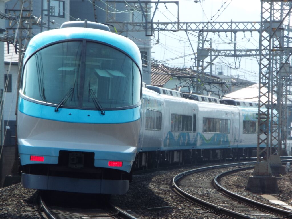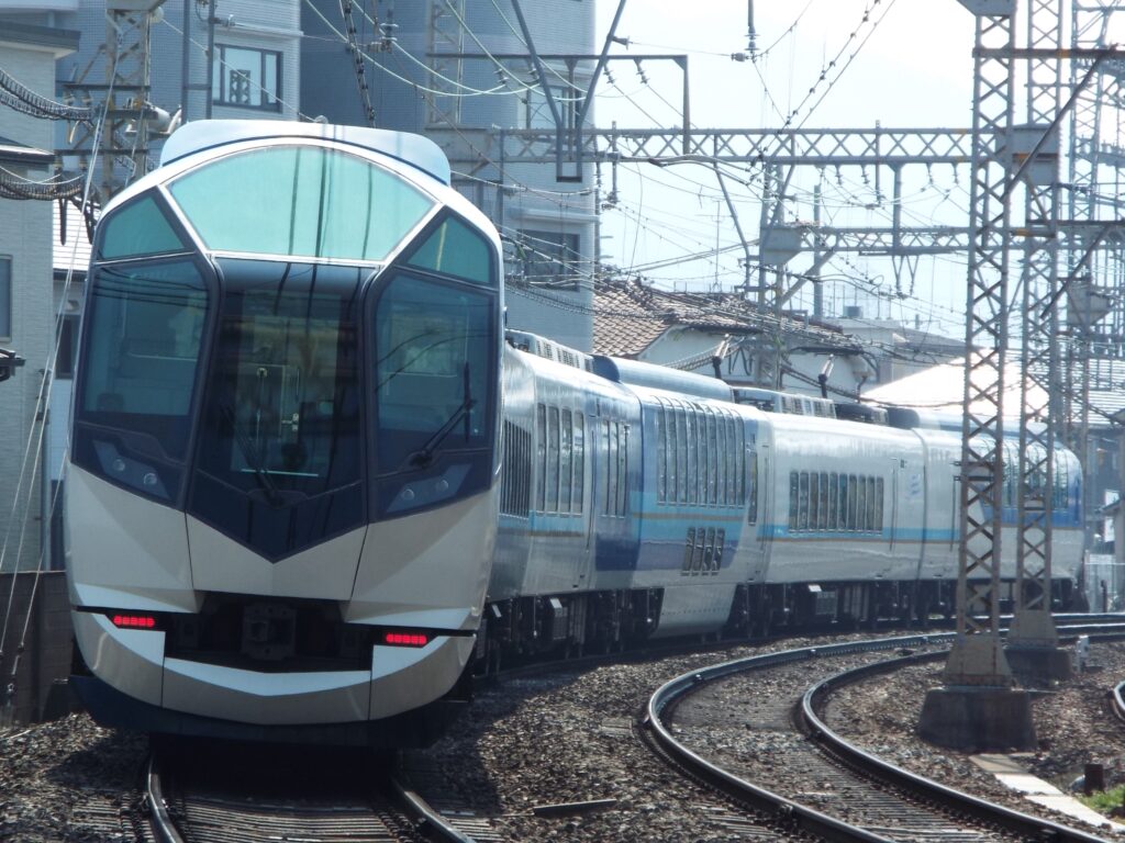 「大阪上本町に向かう観光特急「しまかぜ」」:河内山本~高安間にて